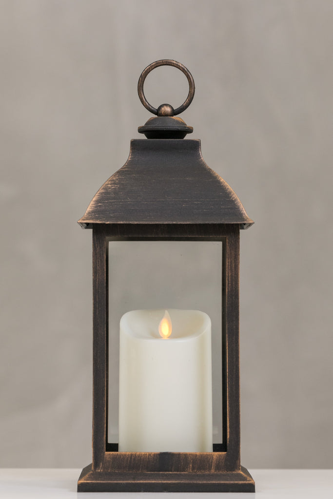 12"H Bordeaux Dk. Copper Lantern w/ LED Candle - Wanderlust Collection